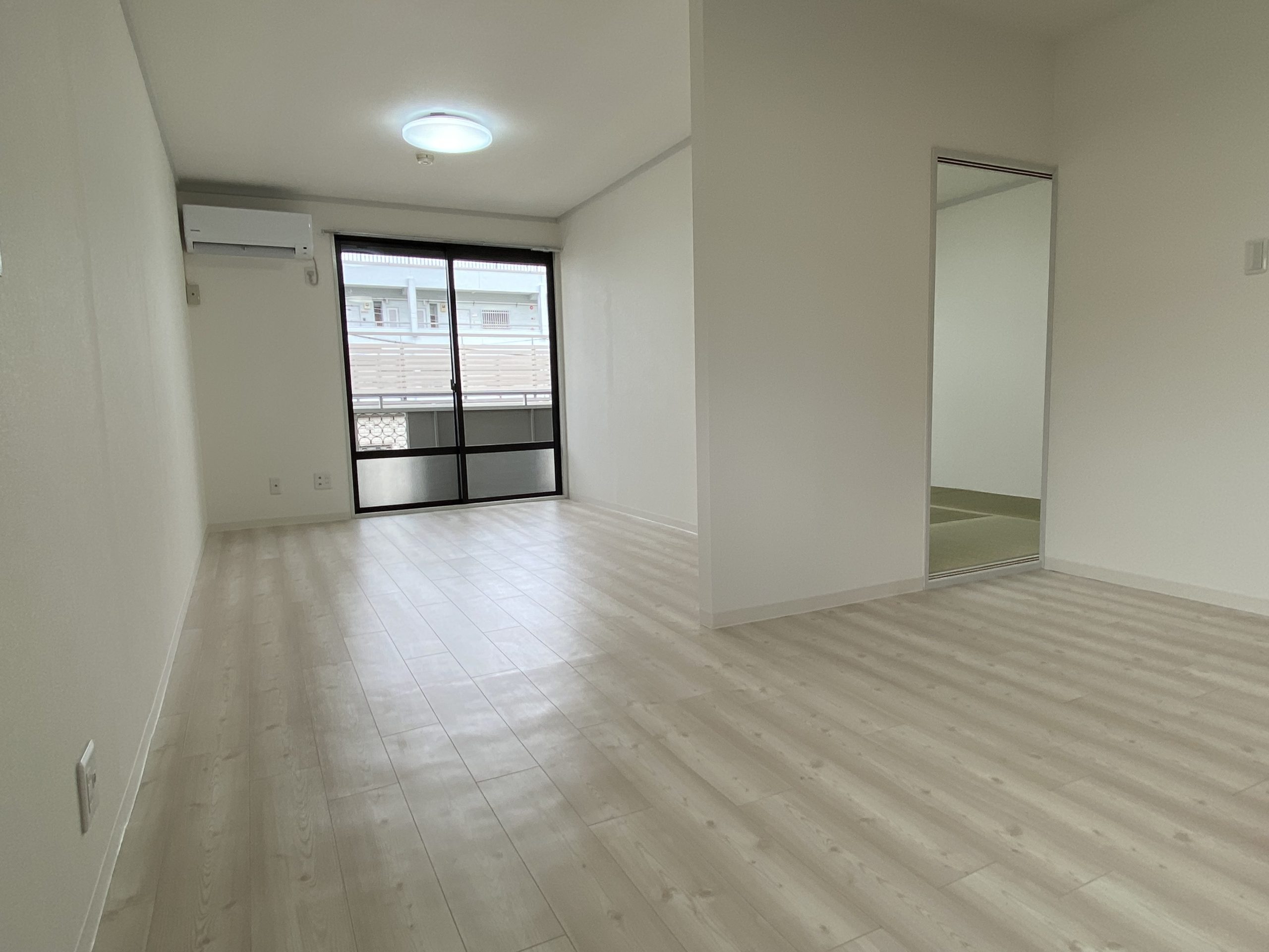 ・エアコン設置(洋室、新品) ・ベランダデッキ、物干金物交換